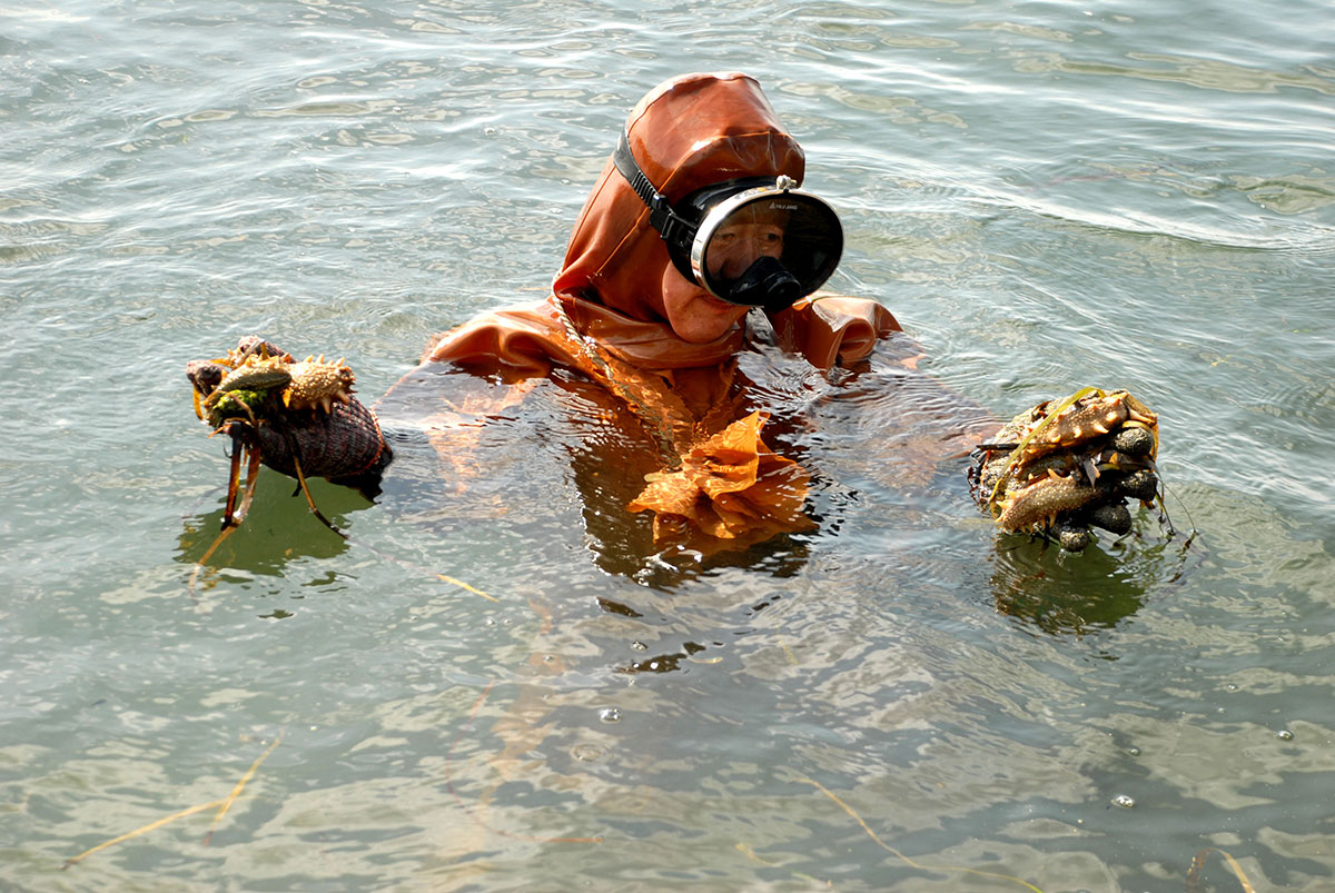每年的春秋两季是平岛海面最繁忙的时节。鑫玉龙辽参由于是海底野生放养,只能依靠人工完成采捕。鑫玉龙的潜水员们需要在这一时期每天反复下潜,一个一个徒手将以万斤为单位的生长5年以上的成熟海参捕捞入网,再一桶桶抬上岸,经常要在寒冷的海底浸泡10个小时。