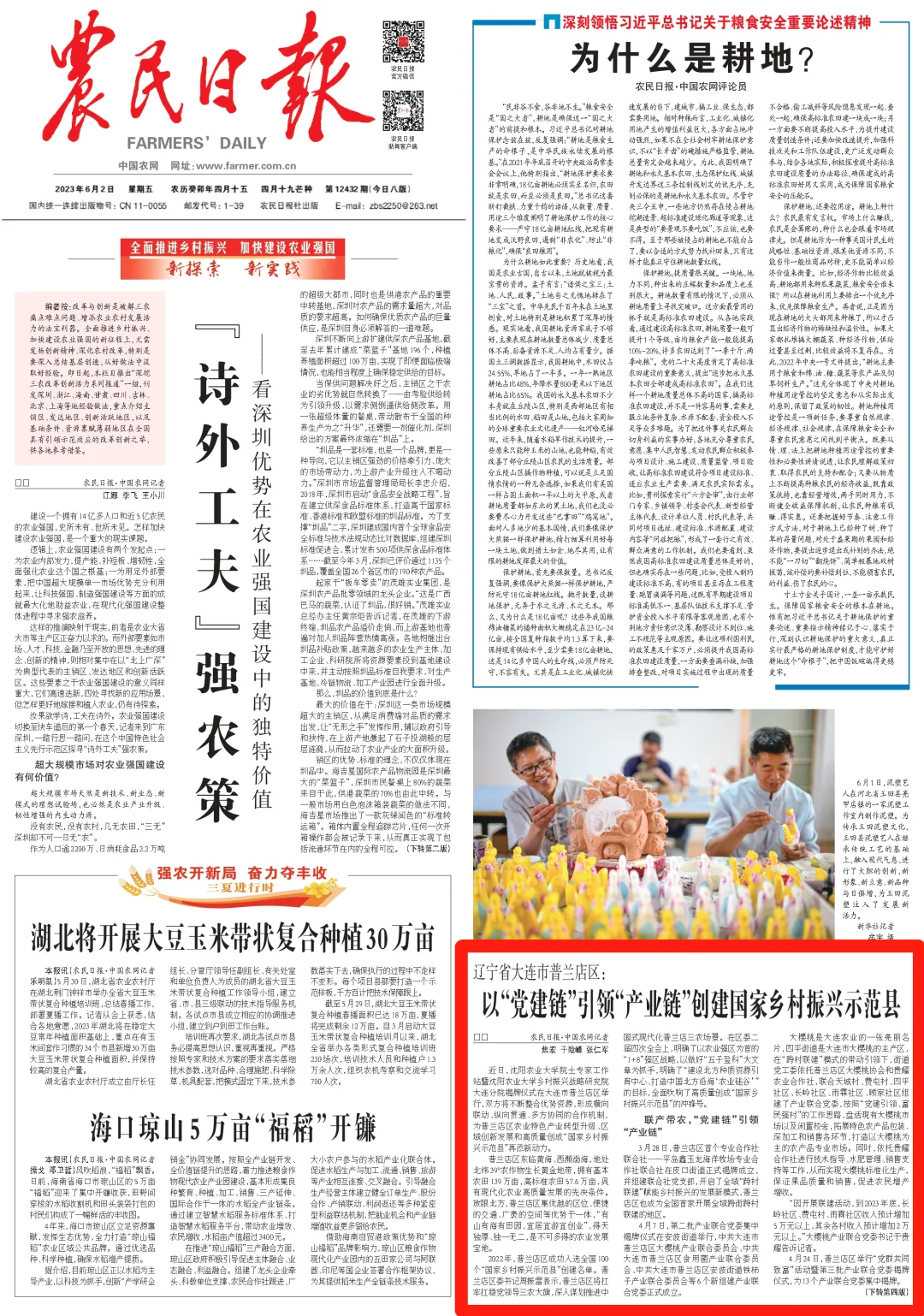 再登央媒丨鑫玉龙随普兰店区创建国家乡村振兴示范县事迹荣登《农民日报》头版