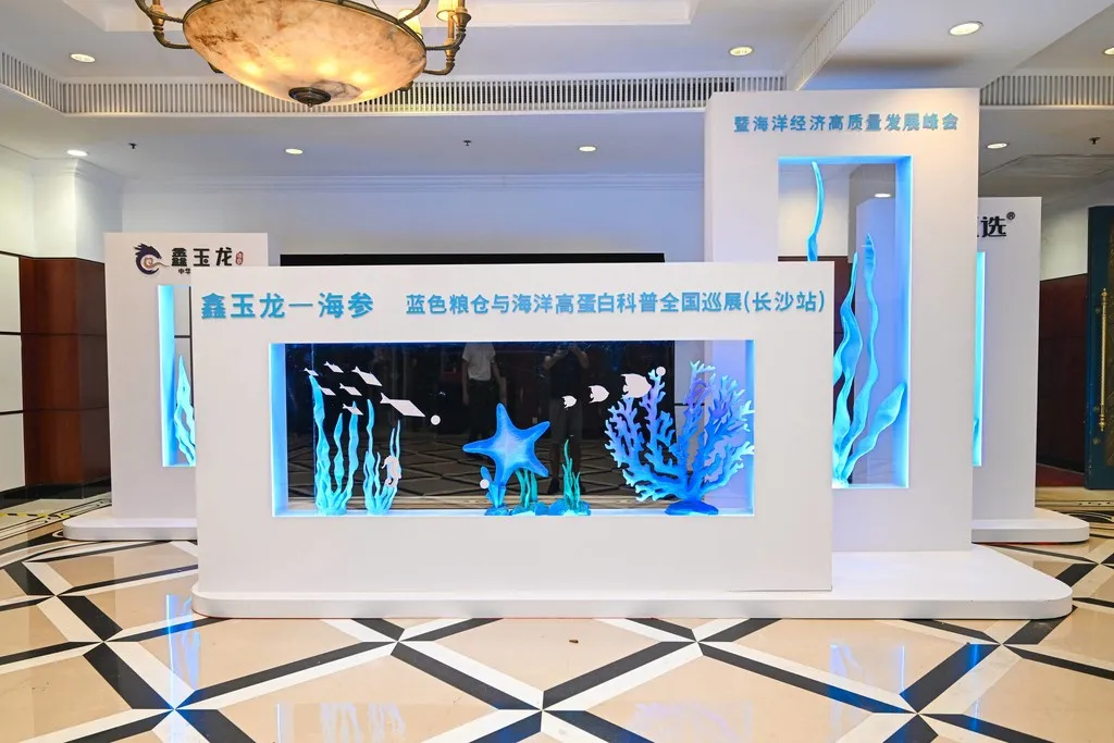 8月31日,由中国食品工业协会指导,鑫玉龙主办,大连平岛鑫玉龙营销有限公司、大连平岛天然产物科技有限公司、璞诺(湖南)生物科技有限公司承办的“鑫玉龙·海参蓝色粮仓与海洋高蛋白科普全国巡展(长沙站)暨海洋经济高质量发展峰会”隆重召开。